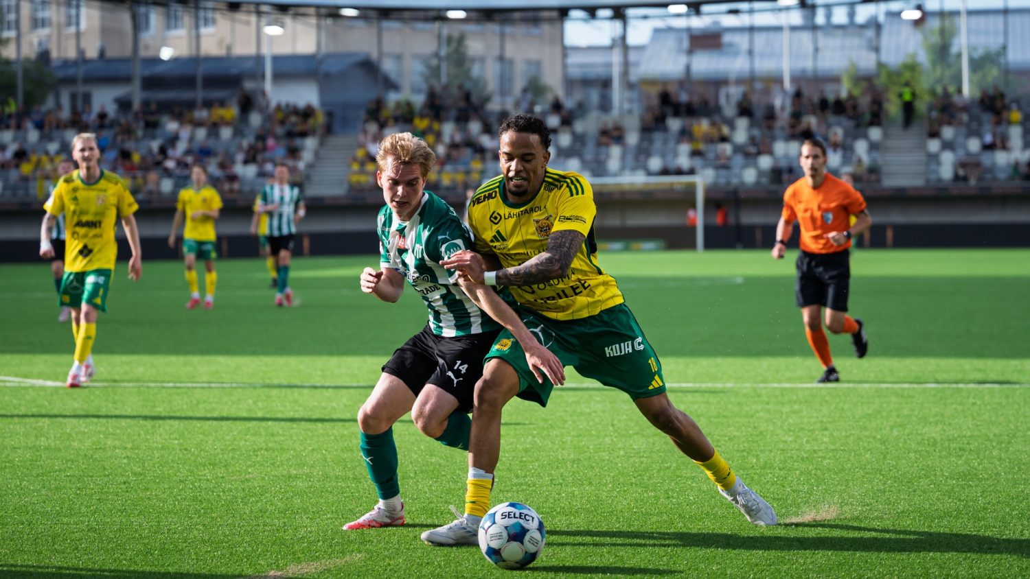 Seuraavaksi keltavihreiden syöttöpeli tuotti paikan Vincent Ulundulle, jonka pienestä kulmasta lähtenyt yritys nousi yli maalin. KTP suoritti ensimmäisen vaihtonsa tunnin pelin kohdalla, kun joukkueen uusi hyökkääjähankinta Lucas Rangel otti Aleksi Tarvosen paikan.